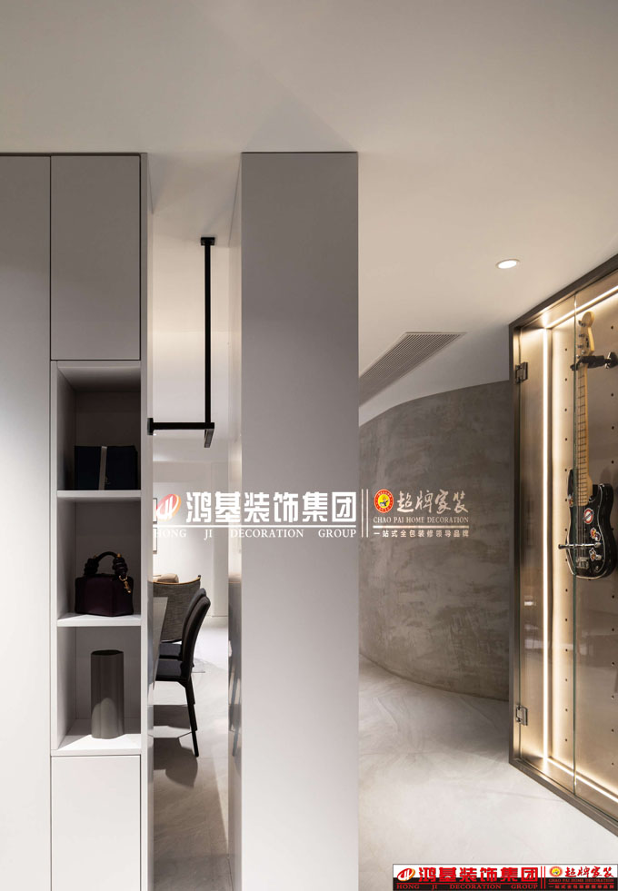 玄關:玄關集合了日常歸家和出門的必要功能,可隨手放包和手中物品、掛2件外套、裝飾花器,餐廳的空間也在玄關處若隱若現,增加視覺延伸感。